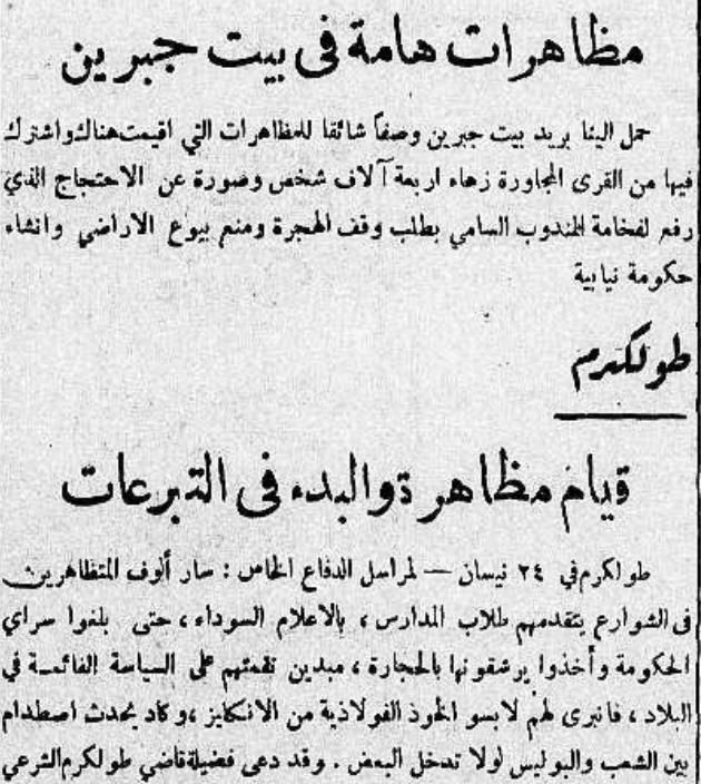 In the earlier stages of the war, when Egyptian forces entered Palestine, the First Battalion of the Egyptian army had been ordered to take up positions in Bayt Jibrin (located on the front lines separating Israeli and Egyptian forces) during the second half of May. In early May, the New York Times correspondent had reported that thousands of Jaffa's inhabitants had fled inland to the Hebron area, 'large numbers of them to become cave dwellers in the historic caves of Bayt Jibrin, northwest of Hebron.'